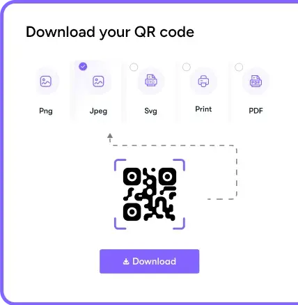 Đảm bảo độ phân giải cao nhất cho mã QR của bạn. Tải xuống ở định dạng JPG, PNG hoặc SVG